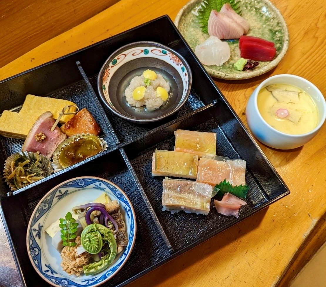 四季折々の味を盛り込んだ、地元割烹の松花堂弁当をご賞味ください。。